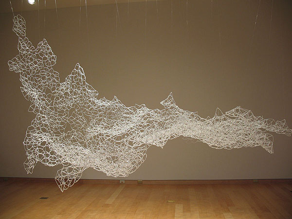 Alyson Shotz is an American artist based in Brooklyn, New York. She graduated with a BFA from the Rhode Island School of Design in 1987 and an MFA from the University of Washington in 1991.Alyson Shotz investigates issues of perception and space with sculptures made from a range of synthetic materials such as mirror, glass beads, plastic lenses, thread and steel wire.