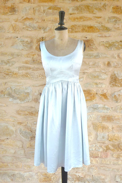 Robe en Satin Bleu Clair Vintage 1950/ Vintage 1950s Light Blue Satin Dress |
