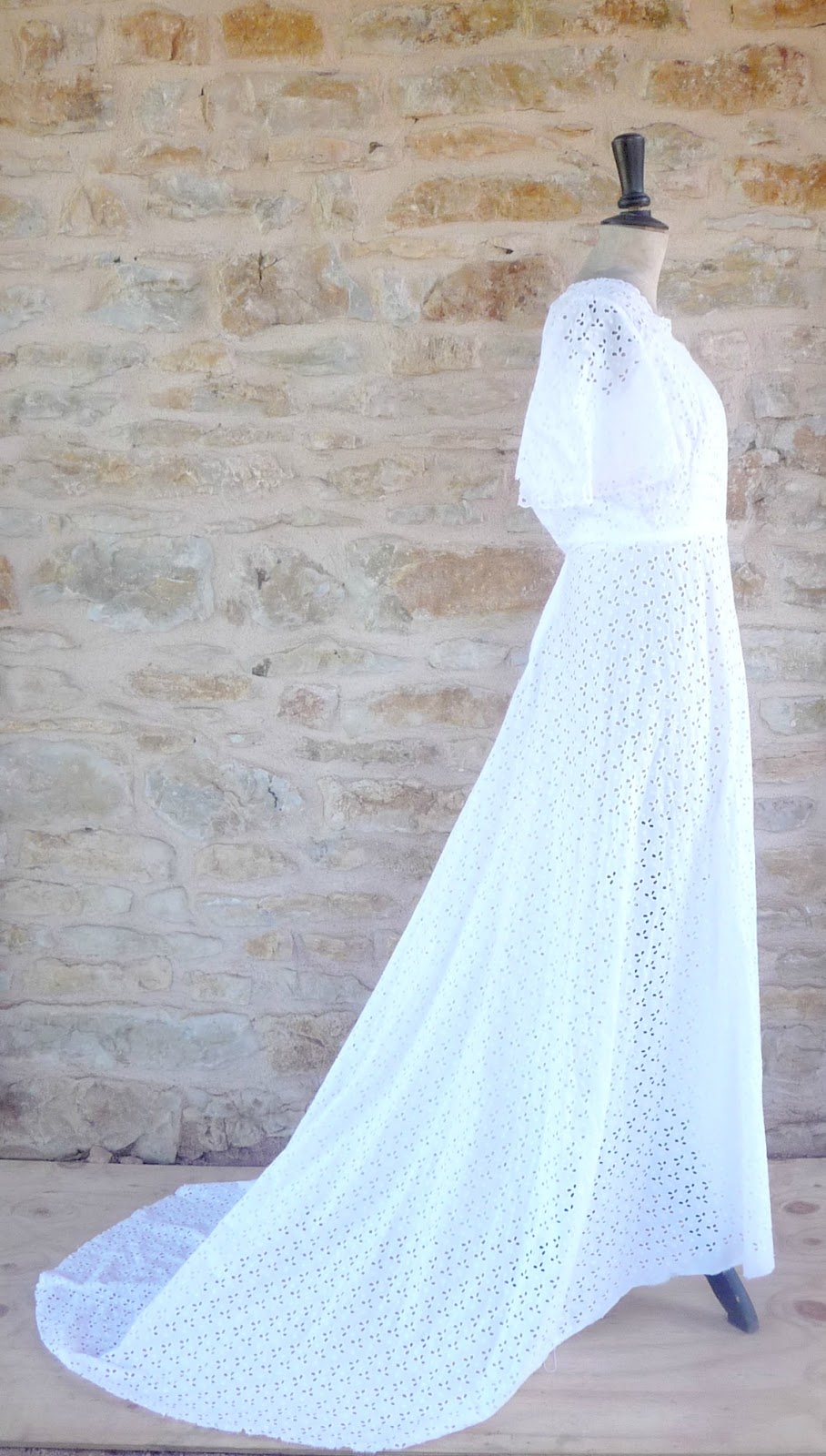 Robe Droite en Dentelle Blanche et Bordeaux Vintage 1950 / 1960 /
